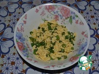 Зелёный лук порезать и прибавить к сырной начинке, перемешать. |