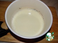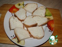 В плоскую большую миску выложить ломтики багета (слегка черствого) (в этот раз у меня другой хлеб, но лучше с багетом) и залить молочной смесью. |