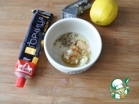 К горчице добавляем соль, сок лимона, порошок имбиря, семена кориандра, растительное масло, хлопья перца чили (по вкусу), выдавливаем чеснок. Перемешиваем. |