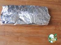 Рыбу можно запекать всю сразу или порционно. Отрываем соответственно кусок фольги, складываем в два раза. Кладём маринованную рыбу на фольгу. |
