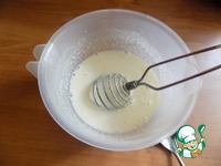 В кислом молоке гасим соду, добавляем сахар и соль. Соединяем. |