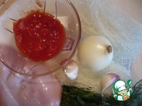 Филе режем на небольшие кусочки, добавляем измельченный чеснок и томаты. Солим, перчим. Маринуем 30 мин. |
