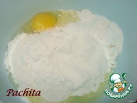 В муку добавляется яйцо и 1/2 ч. л. соли, затем горячая вода в 3 приёма, после каждого долива воды мучная смесь перемешивается. |