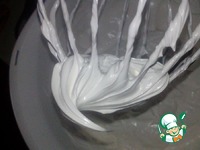 Пока готовится сироп, белок ставим вбивать до пены как на фото. Как только сироп нагрелся до нужной температуры, маленькой струйкой вливаем в белковую смесь. |