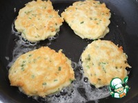 Переворачиваем на другую сторону и жарим до готовности. Ничего не пристает. Наши кусочки или оладышки прилично увеличиваются в размере. |