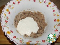 И размять вилкой до однородной массы. Я ее положила в ту же миску, куда терла хрен, все перемешать. |