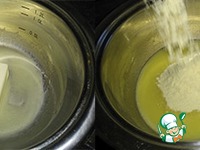 Растапливаем сливочное масло. Всыпаем кукурузную муку и пару минут обжариваем. |