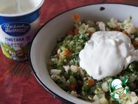 Капусту разобрать на небольшие соцветия и добавить к салату. |