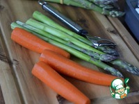 Морковь и спаржу почистить. Удалить твердые концы у спаржы, если они имеются |