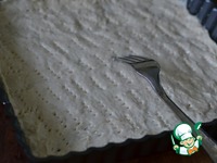 Охлажденное тесто выкладываем в подготовленную форму 23х23см. Помогаем себе влажными руками. Несколько раз тесто проколоть вилкой. Разогреть духовку на 180гр. |