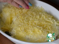 Сверху посыпать тертым сыром. По всему сыру выкладываем кусочки сливочного масла. Запекать в разогретой духовке на 200гр 20 минут или до красивого, золотистого цвета. |