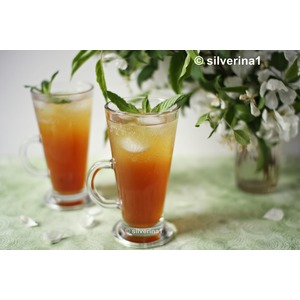 В бокал положить 2-3 кубика льда, на 4/5 заполнить его чаем, затем добавить газированную воду. Подавать сразу. Вкусно, прохладно и освежающе! |