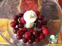 В чашу измельчителя выложить замороженную вишню и лед, измельчить. |
