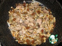 Добавить в сковороду к обжаренному фенхелю ( луку) сардины вместе с соком, изюм, орешки |