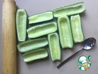 Огурцы режем пополам и вычищаем семечки. (Без энтузиазма, мякоть должна остаться.) |