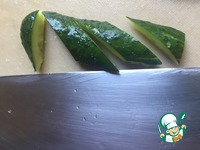Нарезаем отбитые огурцы на кусочки. Размер - чтобы было удобно взять палочками и в рот положить.:) |