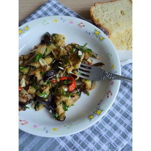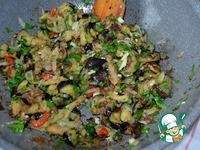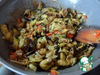 Добавить к баклажанам, перемешать и убрать с огня. НЕ СОЛИТЬ, как правило соли достаточно. |