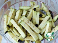 Баклажаны вымыть, обсушить, нарезать брусками. Посолить, перемешать, отставить. |