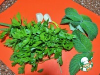 Чеснок почистить, зелень вымыть, обсушить. Нарубить чеснок и зелень. |