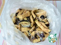 Баклажаны отжать от образовавшегося сока, выложить в пакет, запанировать. |