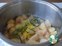 Варить на небольшом огне до размягчения груш. Добавить розмарин и лимонную цедру. |