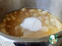 Буквально через пару минут добавить 200 г сахара. Поварить еще немного до полного растворения сахара. |