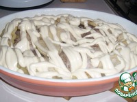 После этого картофель посыпаем солью, заливаем майонезом и ставим в духовку ещё на 15-20 минут. |
