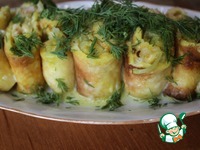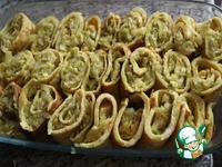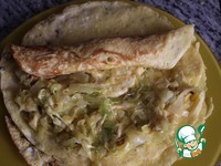 Капусту, нарезанную тонкой соломкой, репчатый лук, нарезанный полукольцами, и сливочное масло выложить на раскаленную сковороду, смазанную растительным маслом. Обжарить до мягкости. На мой взгляд, капуста в этом рецепте вкуснее мягонькая. Приправить хмели-сунели и солью. Когда капуста готова, всыпать тертый сыр, закрыть крышку и выключить огонь. Начинка для рулетов готова. Для любителей мясного можете добавить вареную колбасу, порезанную мелким кубиком, или вареную курицу, разобранную на волокна, в начинку до того, как забросили сыр. Но, честное слово, вкусно и без них. |