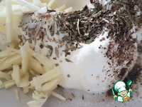 Смешать сметану с сухими травами, добавить чеснок, перец душистый и соль. |