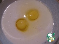 По истечении нужного времени добавить яйца и соду, тщательно размешать. |