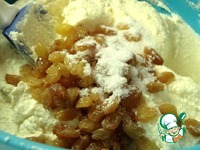 Творожную массу выложить в глубокую емкость, добавить ванильный сахар, изюм предварительно промытый и обсушенный. Тщательно перемешать. |