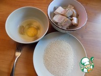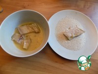 Нарезаем кусочками ~3 см шириной. Яйцо разбиваем в плошку, выкладываем горчицу, солим и вилкой соединяем. Кусочки рыбы обмакиваем в этой смеси. |