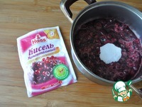 Берём кисель моментальный со вкусом вишни ТМ НААS, сразу засыпаем в вишню, после того, как она закипела. |