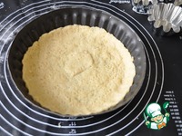 Берём форму для выпечки тарта, равномерно распределяем тесто толщиной около 7 мм, делаем по 1 см бортики, накалывает тесто вилкой. |