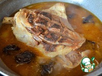 Влить 0,7 - 1 л. кипятка. Тушить 1 - 1,5 часа, периодически переворачивая. |