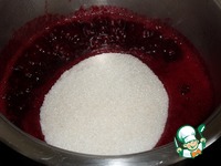 Ягодное пюре переливаем в широкую кастрюлю с толстым дном. Получается 450 грамм ягодного пюре. |