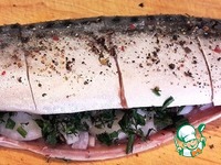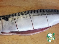 Скумбрию выпотрошить, вымыть и высушить бумажным полотенцем. Голову оставить. Сделать по 3-4 разреза с обеих сторон. |