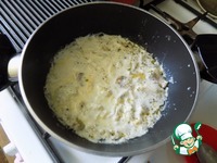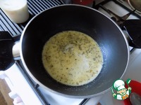 Добавляем ложку муки, опять перемешиваем и наливаем молоко холодное. Сначала половину указанной нормы, перемешиваем. Соус начнёт густеть... |