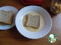 Пропитываем хлеб с одной стороны в этой смеси. |