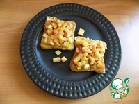 Выкладываем на тарелку, в которой будите подавать. Сверху тостов раскладываем яблоки. |