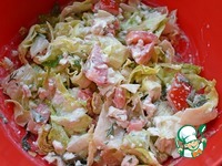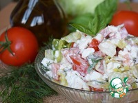 Описание: Предлагаю вашему вниманию легкий, но сытный салат из овощей и творога. А в летнюю жару он вполне заменит обед или ужин. И даже для завтрака это отличный вариант, т. к. этот салат я готовлю без лука.
