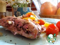 Приятного аппетита! Грудка получается не сухая, ароматная и очень красивая на срезе. Овощи просто восхитительны!