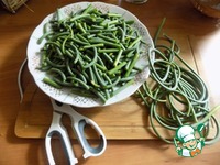 Стрелки моем, чистим, обсушиваем и нарезаем длиной ~3 см. |
