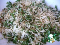 Теперь приготовим панировку для баклажанов: в миску высыпаем панировочные сухари, добавляем натертый на мелкой терке твердый сыр, соль, черный молотый перец и мелко нарезанную петрушку. |