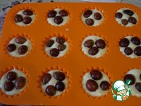Разложить тесто по формам на треть. Сверху выложить ягодки крыжовника. Можно использовать любые формы на ваш вкус. Здесь у меня силиконовая форма для маффинов. |