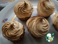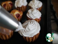При помощи кондитерского мешка и насадки, отсаживаем сверху белковый крем. |