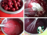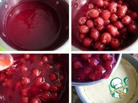 Остывший пудинг смешать с вишней. Выложить массу на тесто. |