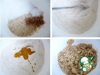 Для приготовления крошки (штрейзеля), в миске смешать орехи, сахар, муку, корицу, перемешать. Постепенно вливать масло в сухую смесь и взбивать миксером, насадка крюк. |