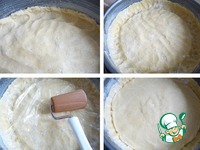 Перенести тесто в форму. Руки припылить мукой, разровнять тесто по форме. Указательным пальцем, припыленным мукой, прижать тесто по краю формы, чтобы оно немного поднялось вверх. |