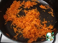Поставить вариться 3 яйца. Чистую очищенную морковь натереть на крупной терке. Обжарить на растительном масле до готовности. Присолить, добавить хмели-сунели в конце жарки. |